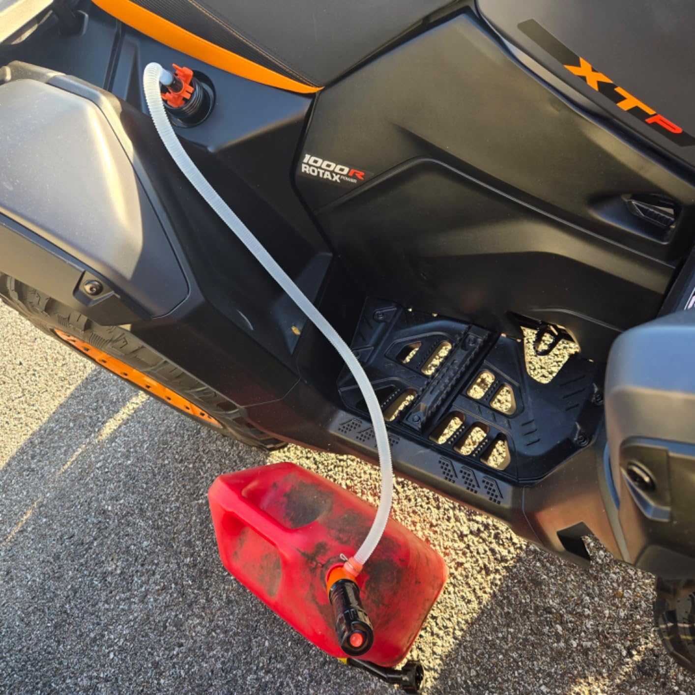 Die Anwendung ist super simpel: Batterien einsetzen, ein Ende in den Kanister, das andere in den Tank stecken und den Schalter betätigen. Kein schweres Heben mehr und kein Verschütten. Der Durchfluss ist schnell und gleichmäßig, und die Pumpe stoppt sauber, sobald man fertig ist.